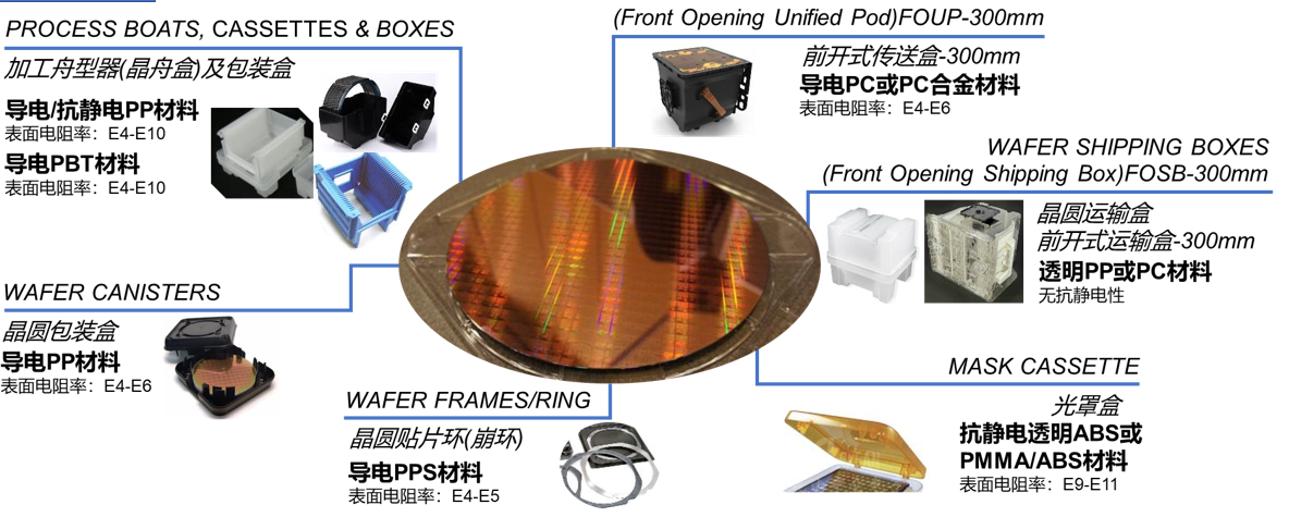 晶圆包装材料是专为晶圆代工厂在加工及转运过程中的需求,定制的整体解决方案。目前的行业需求主要为材料静电释放能力(电阻),尺寸稳定性(耐热性),离子及颗粒释放(低析出)等。但是可定制化程度不高。